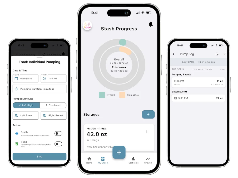 ¿Por qué usar tres aplicaciones diferentes? Obtén un temporizador de extracción de precisión, administración avanzada de reservas (rastreando más de 100 ubicaciones) y seguimiento completo del crecimiento del bebé, todo perfectamente sincronizado en una sola app.