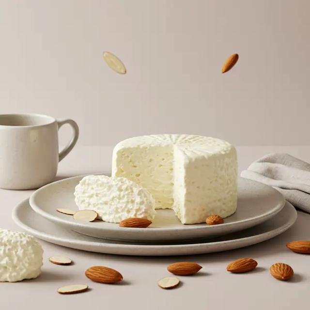 At this age, if almond cheese is soft and spreadable, you can continue to offer it thinly on strips of soft bread or crackers, or mix it into mashed vegetables, grains, or pasta. Use no more than 1 teaspoon (5 ml) per meal. If the child has a good pincer grasp and chewing skills, very small blobs (pea-sized, about 0.5 cm diameter) may be offered on a plate for self-feeding, but avoid thick chunks or cubes. Watch for any signs of allergic reaction—almonds are a major allergen. Serve with iron-rich foods, colorful vegetables, and whole grains for balance.