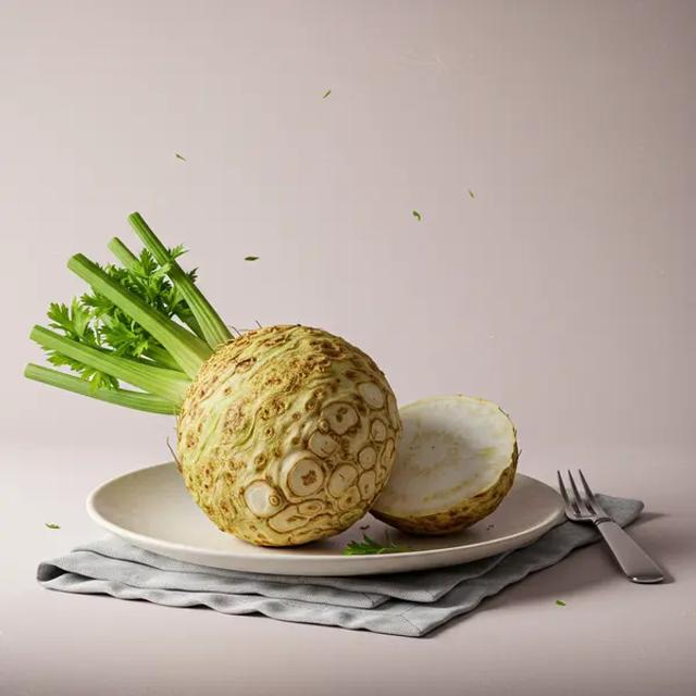 Serve 3-5 tablespoons (45-75g / 1.5–2.5 oz) of cooked celeriac in varied forms (sticks, cubes, slices, or in mixed dishes) as part of a balanced meal containing protein, healthy fats, and vitamin-rich veggies. At this age, children enjoy flavor variety, so offer with roasted vegetables, dips, or as a side in casseroles and soups. Raw celeriac can be included grated in salads if child is proficient at chewing. Portion sizes may vary according to appetite.