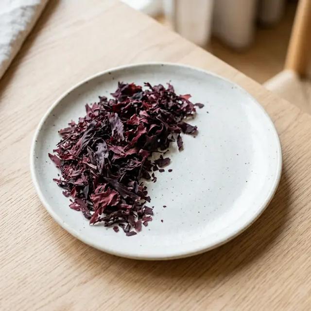 For toddlers, you can offer up to 1/2 teaspoon (approx. 1-2g) of finely chopped rehydrated dulse or flakes per day. Use it as a nutrient-dense seasoning sprinkled over pasta, mixed into soups, or stirred into rice bowls to add a savory, umami flavor without excess sodium. To maximize the absorption of its plant-based iron, pair dulse with foods rich in vitamin C, such as a side of steamed broccoli or sliced strawberries for dessert. Continue to encourage self-feeding with utensils to build independence, and serve it as part of a balanced, varied meal.