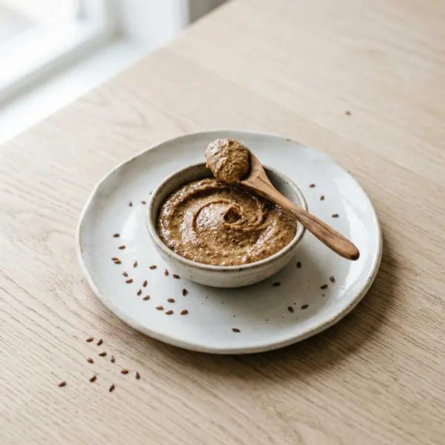 Offer a serving size of about 1 to 2 teaspoons (5-10 ml; 0.2-0.3 oz) of thinly spread flaxseed butter for your toddler. It serves as an excellent energy-boosting spread on whole-grain sandwiches or as a nutritious dip for soft fruits and vegetables. For a balanced snack, pair it with a source of protein like Greek yogurt or a glass of milk. You can also blend it into a smoothie with fruits and spinach to add healthy fats and fiber, which helps promote satiety and digestive health. Encourage self-feeding with utensils but continue to monitor meals.