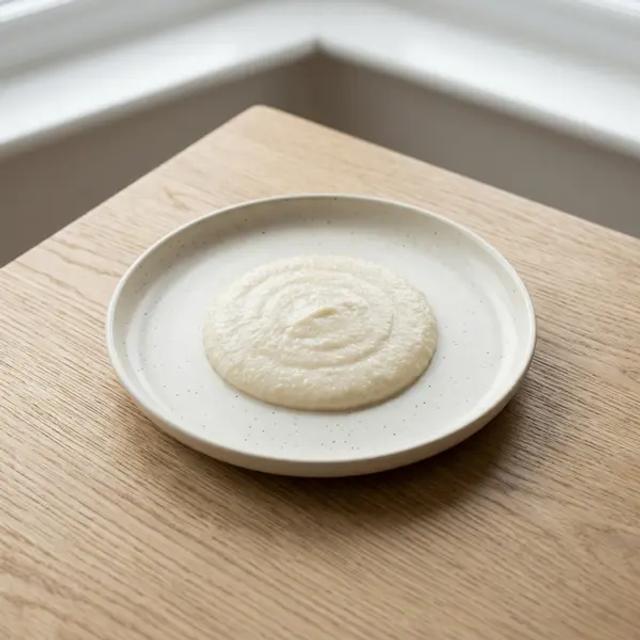 As your baby's appetite grows, you can increase the serving size to about 1/4 cup (60 ml; 2 oz). Continue to mix in vitamin C-rich fruit mashes to aid iron absorption. This is also an excellent time to introduce healthy fats for brain development; try swirling in a small amount of mashed avocado or thinned-out, smooth nut or seed butter (assuming no allergies). The thicker texture is perfect for practicing self-feeding with a spoon, as it will stick better. Allow your baby to explore the food with their hands to engage their senses.