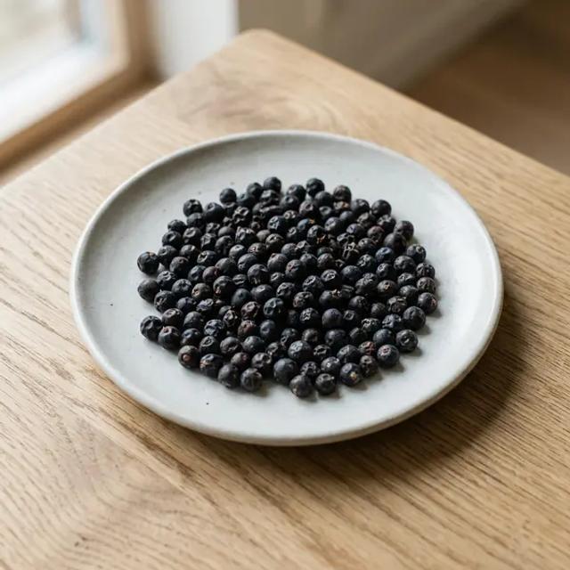 The serving size of juniper berry itself is zero. You are only serving the food that has been flavored by it. After infusing a family-sized stew with one crushed berry (and removing it), you can serve 2-4 tablespoons (30-60 ml; 1-2 oz) of the strained broth or resulting purée to your baby. Juniper's pine-like flavor pairs well with puréed carrots, parsnips, or lamb. Introduce this new, complex flavor by offering a small amount on a pre-loaded spoon for your baby to bring to their own mouth, fostering independence and sensory exploration.