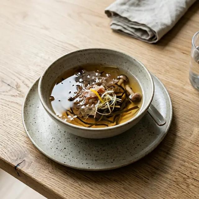 At this stage, you can increase the serving of kombu dashi to 2-4 tablespoons (30-60 ml; 1-2 oz) per meal. Use it as a base for simple, chunky soups containing soft-cooked pasta, minced chicken, and well-cooked vegetables. The dashi adds significant flavor without needing salt. It's excellent for poaching fish like salmon, which provides healthy fats crucial for brain development. You can also use it to cook rice or quinoa, infusing the grains with a savory taste. Encourage self-feeding by offering soft, dashi-poached finger foods or a bowl of simple soup with a spoon.