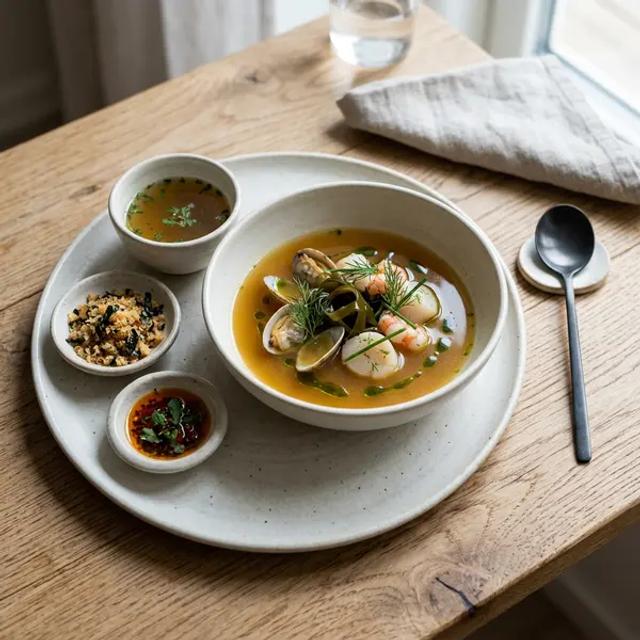 A typical serving of seafood broth for a toddler can be about 1/2 cup (120 ml; 4 oz), served as a soup or stew. Create a balanced meal by adding whole grains like barley or brown rice, and a variety of colorful, soft-cooked vegetables. To boost its nutritional profile, pair it with a source of healthy fat, such as a swirl of olive oil or chunks of avocado. Encourage your toddler to practice their utensil skills by eating the soup with a spoon. You can also serve the warm broth in a small cup for sipping, which is excellent for hydration.