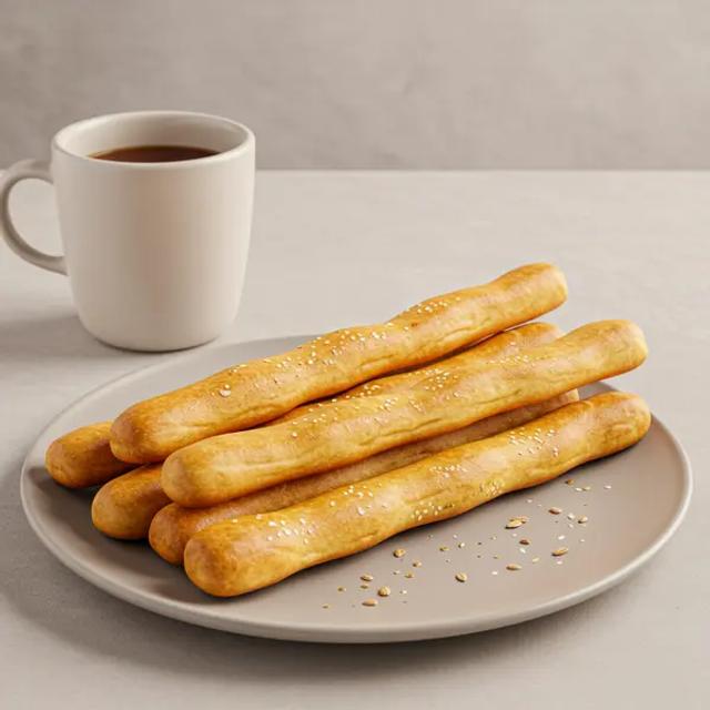 For babies just starting solids (6-9 months), offer 1 soft breadstick (about 10 g / 0.35 oz) as part of a balanced meal that includes iron-rich protein (such as pureed lentils or chicken), a vitamin C-rich vegetable or fruit, and a healthy fat (such as olive oil or avocado). Avoid salt or sugar in the breadstick. Watch carefully for signs of readiness and promote self-feeding skills, always ensuring other meal components offer a range of textures and nutrients.