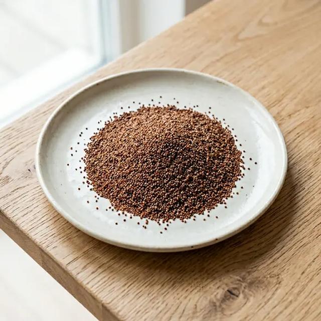 Begin by offering 1-2 tablespoons (15-30 ml; 0.5-1 oz) of smooth teff porridge. To boost its iron absorption, stir in a small amount of a vitamin C-rich fruit puree, such as mashed strawberries or mango. Teff has a mild, nutty flavor that pairs well with both sweet and savory additions like prune puree or mashed sweet potato. You can also add a small amount of healthy fat, such as a swirl of olive oil or mashed avocado, to support brain development. Encourage self-feeding by offering the porridge on a pre-loaded spoon for your baby to grasp.