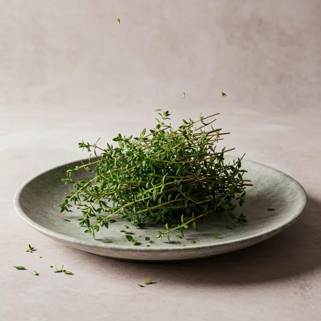 Continue to use thyme as a background flavor — a small pinch (up to 0.5g/0.02oz) brings interest to meals without overpowering. Mix into eggs, roasted veg, or pasta with tomato sauce. Thyme pairs well with beans, poultry, and root vegetables for a nutrient-dense plate. Include iron and vitamin C sources alongside for a balanced meal. Always supervise eating and ensure the rest of the meal is soft and easy to chew.
