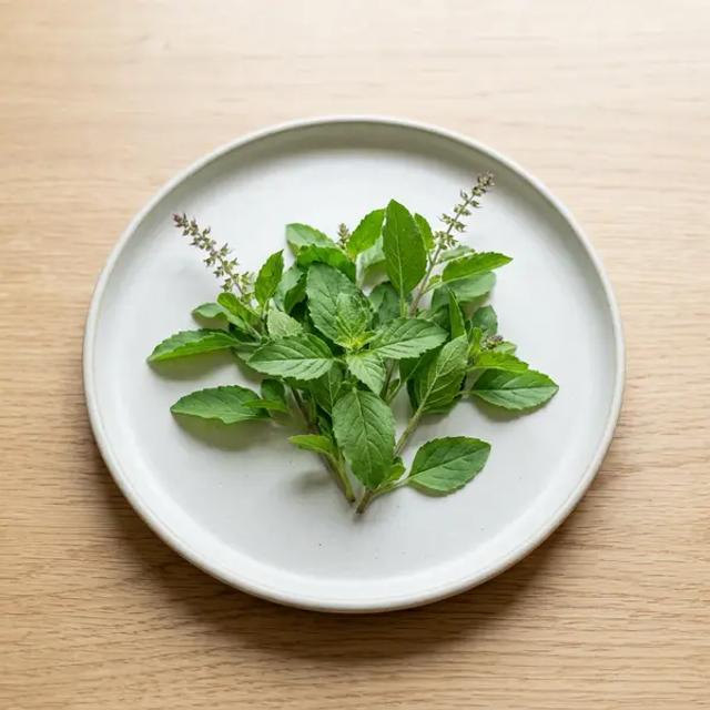Introduce tulsi very sparingly, starting with just 1-2 finely minced leaves cooked into a larger portion of food, or by serving 1-2 tablespoons (15-30 ml; 0.5-1 oz) of a weak tulsi-infused water or broth. The goal is flavor exposure, not volume. Mix the minced herb into an iron-rich puree, like lentils or chicken, and pair it with a vitamin C-rich food like mashed sweet potato to enhance iron absorption. Serve this aromatic puree on a pre-loaded spoon to encourage self-feeding while controlling the introduction of the new, complex flavor profile.